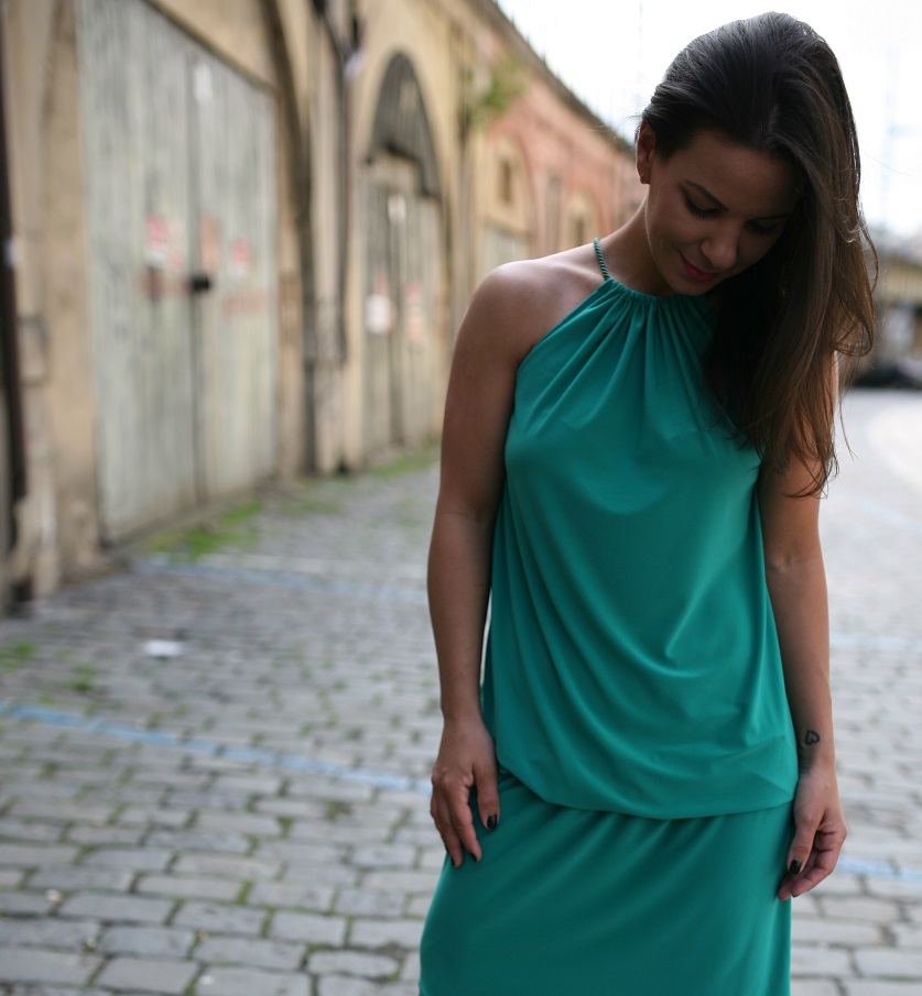 Dlouhé šaty s uvázáním za krk